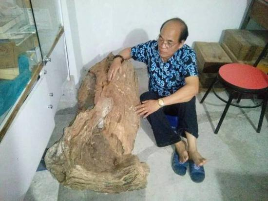 事情追溯到今年春节期间。酷爱雕刻的许先生闲来无事,准备把院中一株“腐烂木”加工做成茶几。加工时,甜香气味扑鼻而来。一时好奇,他就把碎片放入水中,发现百分之六十沉于水中。正在此时,妻子探亲回家,大惊失色,说:“这是我爷爷和爸爸的藏品啊!”