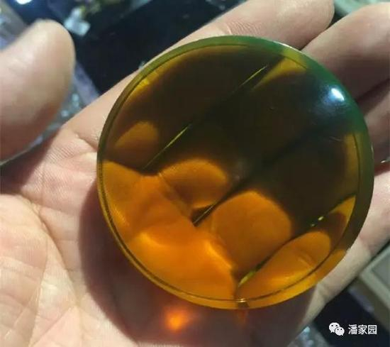 塑料仿的蓝珀特别像墨西哥蓝珀。里面做进去有絮状的杂质,很像天然的包裹体;但是放大观察:里面有拉长的气泡,表面有塑料的划痕,边缘非常锋利,没有任何断茬,琥珀多少都会有。