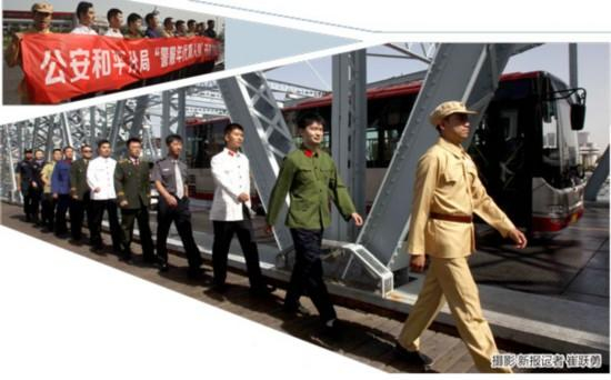 新中国成立以来,人民警察的制服历经9次换装。昨天上午,公安和平分局民警穿上不同年代的警服在解放桥亮相,在国庆前夕向市民展示警服的历史变迁。收藏这些警服的是一位28岁的民警,他用这种方式表达对人民公安事业的热爱。