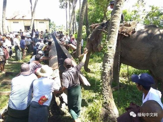 在相关当局负责人、植物学专家和村庄寺庙主持的带领下,村民们使用大象和水牛,终于在10月7日,将块长58.6英尺、直径12.2英尺的巨大木头打捞出来,运送到村庄的寺庙内。