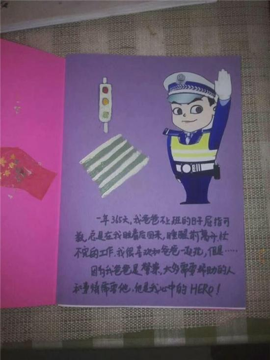 (8日)上午,交警二大队民警李冰在自己的微信朋友圈晒出几张图片,附上一段文字:这是我大队民警在群里发出的几副画,虽然父亲是孩子的偶像,心中的英雄!但看完孩子的画,心立马变的脆弱了,柔软了…