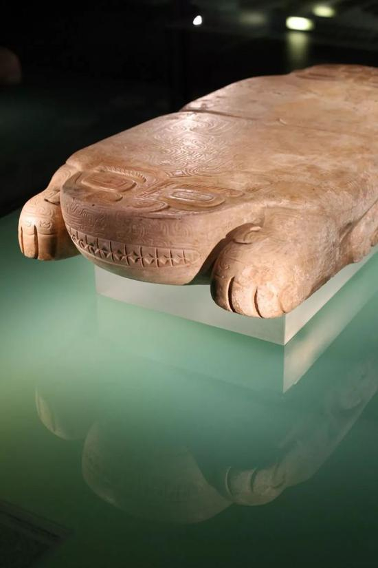 早期的殷墟发掘所得之物中,有一件巨型的动物形白石雕刻物,上面有诸多动物杂糅在一起的形象,整体像一只青蛙匍匐的样子,你可以在台北中研院陈列馆看到它。