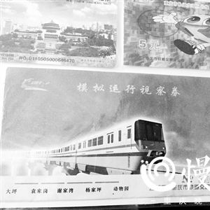 轨道交通票是除了花哨的广告票之外最漂亮的一种票,颜色鲜艳,还有卡通形象。记者注意到,轨道交通票里有一张2号线通车时的模拟运行视察劵,“这张模拟运行视察劵很珍贵,是我找一位保安要到的。”