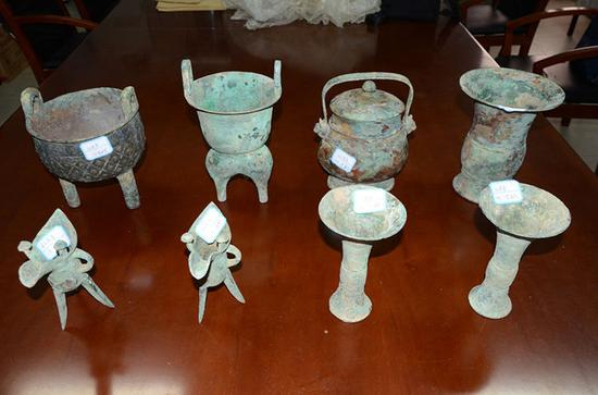 据介绍,2017年以来,安阳公安机关深入组织开展打击了文物犯罪专项行动,转战河北山西、山东、云南、广东,成功侦破盗掘殷墟古文化遗址古墓葬案25起、故意损毁文物案1起,打掉盗掘破坏殷墟遗址古墓葬团伙14个,抓获涉及实施盗掘、幕后出资、联系销赃、倒卖文物、损毁文物等环节的犯罪嫌疑人140人,在案件侦办过程中追回各类文物713件,其中二级文物8件、三级文物6件、一般文物699件。记者了解到,盗墓团伙所盗出土的文物较多的为青铜花觚和青铜脚杯。