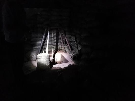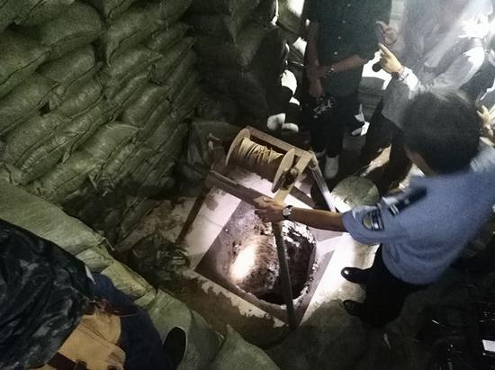 据悉,正在该团伙进行盗挖的过程中,被当地警方查获,记者在现场看到从盗洞内所挖出的土装在编织袋内,就堆放在地下室,而在墙角还放置着一块提前备好地板砖,准备随后盗挖结束后,进行回填后再将地面恢复原貌。