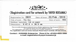 card from Yayoi Kusama Studio’s database私人收藏,东京作品附带有草间弥生工作室开具的作品证书及录入工作室资料库