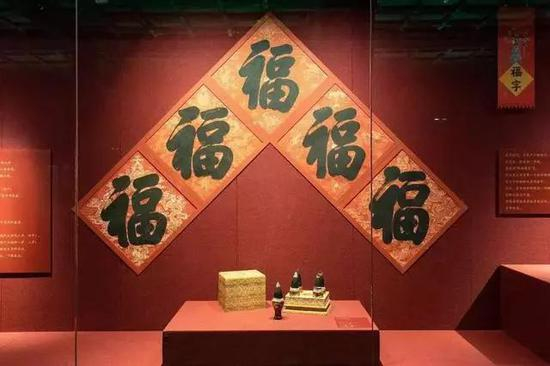 过年怎么能没有福字,于是,展览中就有了从康熙到道光五位皇帝的御笔“福”。