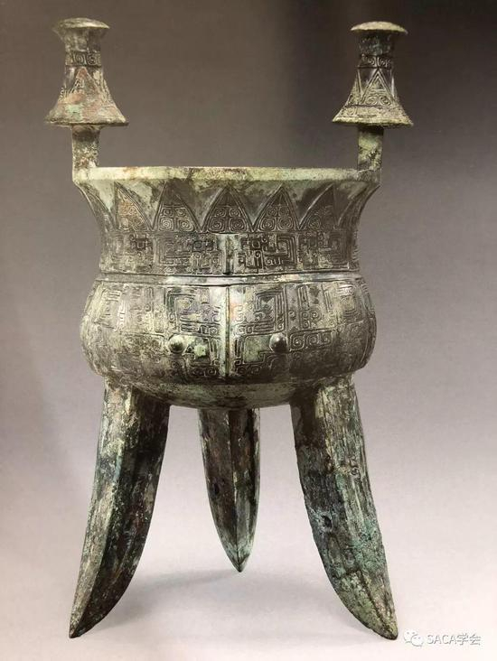 ▲ 商代二里岗青铜斝,H34cm,上海博物馆藏有一个同款和四个类似设计的器物。