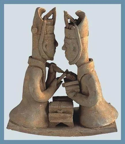 晋青瓷对书俑,1958年长沙市金盆岭9号墓出土,现藏于湖南省博物馆