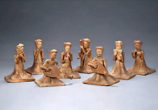 隋张盛墓出土彩绘乐伎陶俑,1959年河南省安阳豫北纱厂张盛墓出土,现藏于河南博物院