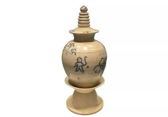 唐青花塔形罐,2006年郑州市上街区峡窝镇唐墓出土,现藏于郑州市文物考古研究院。