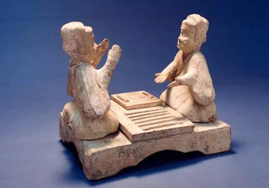 东汉六博俑模型,1972年河南省三门峡市灵宝县张湾3号墓出土,现藏于河南博物院