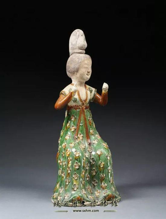 唐三彩梳妆女俑,现藏于陕西历史博物馆