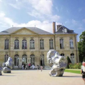 庭院中央是一座不太典型的洛可可式的建筑,这就是罗丹美术馆的主体建筑,也是罗丹最后的住所,他在这里创作、生活。进入馆内,可见第一层被分割成了好几个展厅。这些展厅分别陈列着《青铜时代》《上帝之手》《吻》等代表作。藏品的材质种类丰富,有大理石、青铜、瓷、石膏和陶土等。