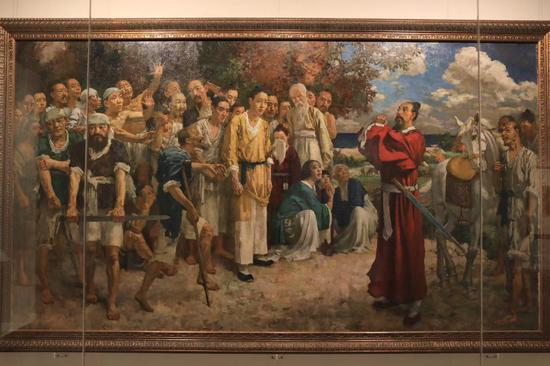 曾被水泡后修复如初的《田横五百士》。摄影/新京报记者 浦峰