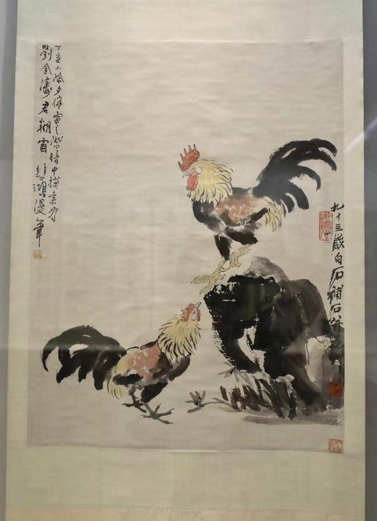徐悲鸿、齐白石合作的《竹石雄鸡》。摄影/新京报记者 浦峰