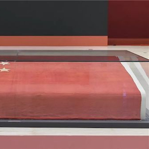 此外,部分文物虽不是首次亮相,但在展厅中也令人耳目一新。如毛泽东在开国大典上亲手按动电钮升起的中华人民共和国第一面五星红旗。1949年9月27日,中国人民政治协商会议第一届全体会议通过中华人民共和国国旗决议。中华人民共和国的国旗为五星红旗,象征中国革命人民大团结。与以往在“复兴之路”基本陈列不同,这面五星红旗全部铺开展示,观众得以欣赏文物全貌。