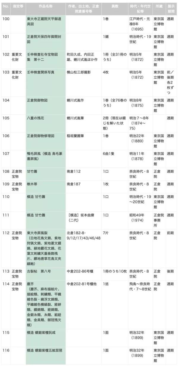 附2:日本奈良国立博物馆正仓院展品清单