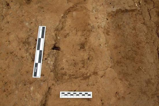 这是三义庄古代道路人脚印遗迹。