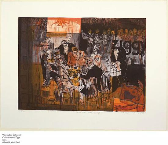 威灵顿·克勒斯科特(Warrington Colescott)1965年的画作《与齐吉的圣诞》(Christmas with Ziggy)讽刺了那些在圣诞节赚的盆满钵满的商人们。在这幅画里,商人们在餐桌上放浪形骸,与身边的情人调情。