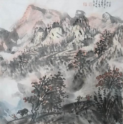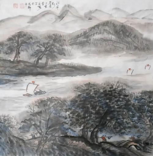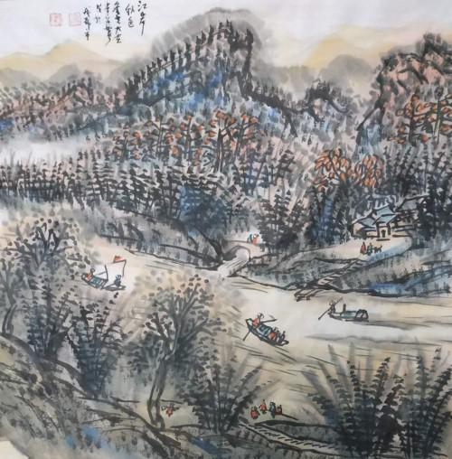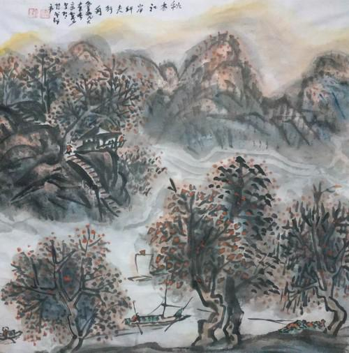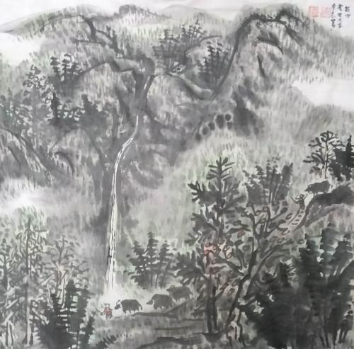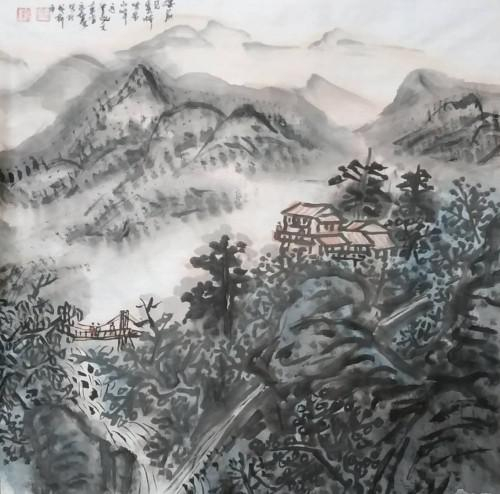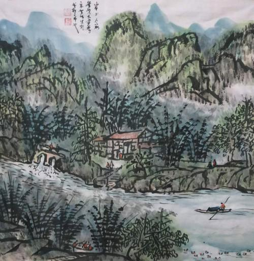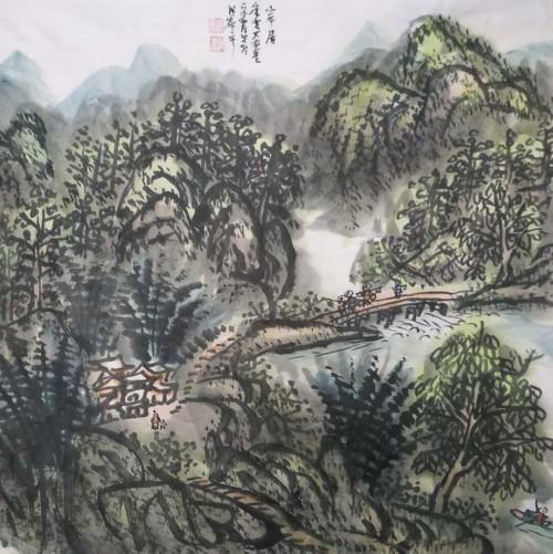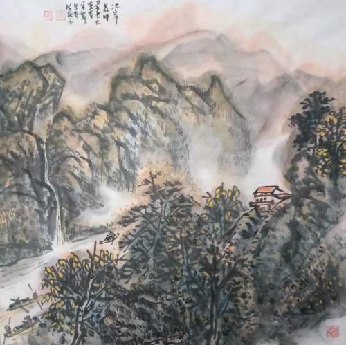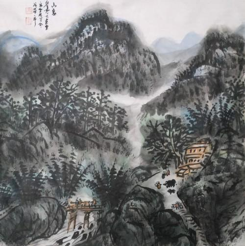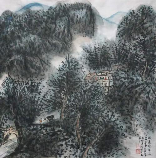 当然,智明也画小画。开大车的人开小车轻松,能画大画的人画小画也容易。智明的小画极好。他的小画轻松自然,笔情墨趣更多一些。但即使是小画,智明仍保持他外师造化,注重内容的个人风格。他的山水画“无一笔无来处”,处处有来历。他画他的家乡,画四川古镇,画他几十年時间里游历不尽的四川风光。故其山水耐看,有趣。智明坚持的是中国山水画外师造化可居可游讲究意境的传统。