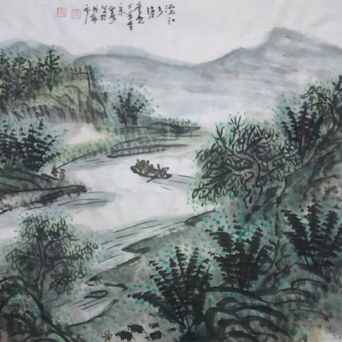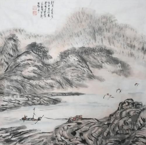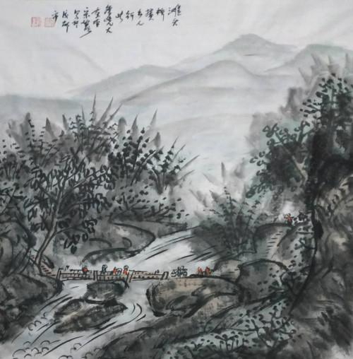 四川画山水的人几乎没有不知道宋智明的。除了他在四川省是位领导群众美术活动的主管人之外,就是人们都知道老宋是个画大画的画家。只要有展览,老宋参展的山水画肯定是最大的。他的画不仅大,而且大得复杂,大得有看头:结构宏大,内容丰富,繁山复水,楼台亭阁,土径石阶。小至一峰一溪,有几个家人钓者樵夫点缀;大致整个市县城镇,人物成百上千活动其中……宋智明画大画,画复杂场景的画是这样的出名,以致有的城市想画全景图也去找他。可见这就决非贪图尺寸的盲目时髦,而是具胸有万千丘壑的真本事。