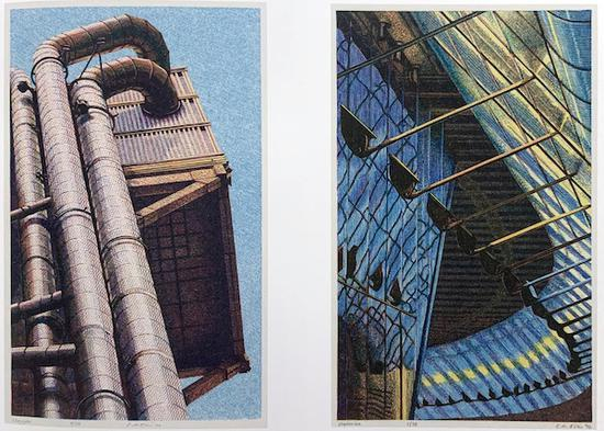 埃德温娜·埃利斯(1946年生)作品,左:《劳埃德》、1996,三块树脂版套色© Tfl;右:《滑铁卢》,1996,三块树脂版套色© Tfl。图片摄影©Tom Willingham