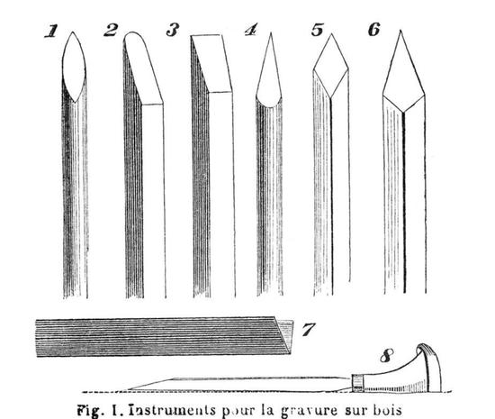 关于木口木刻与木面木刻的异同,简单说,木口木刻与木面木刻在版画家庭中都属于凸版版画,在材料工具上的区别主要在前者使用诸如黄杨木,柠檬木等木材的横切面,工具则是沿用金属凹雕版画工具,所以可以运用白线雕版法,刻制出极为精细的而明暗层次丰富的画面。木面木刻(通常称为“木刻”)则是用木材径切面或者弦切面进行刻制,和诸如三角刀,圆口刀,平口刀等工具刻出。作品精细程度不及木口木刻,但可以刻制较大画面。