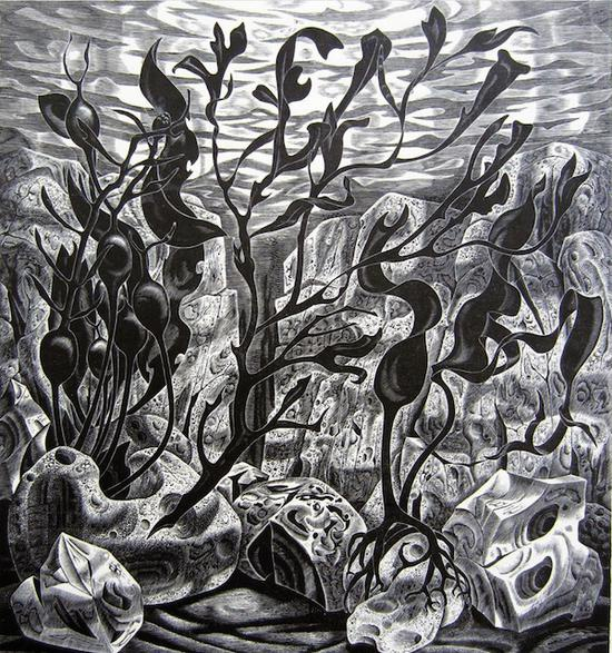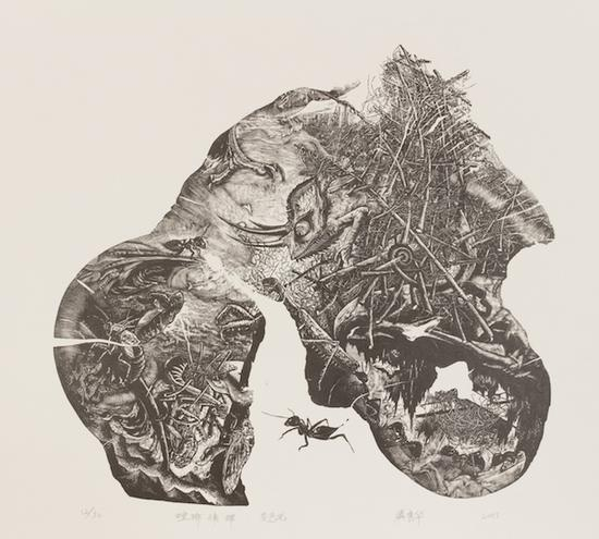 彼得。福斯特 (1934-) ,《我脑海里的电影院》, 1994年,套色木口木刻 © Peter Forster,图片摄影©Tom Willingham