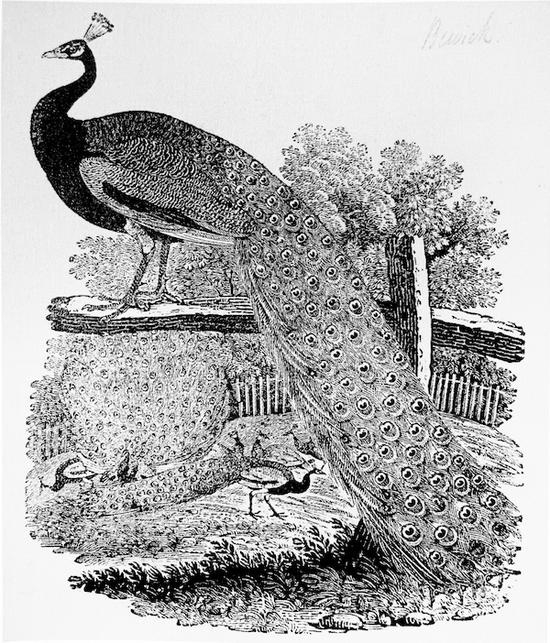 托马斯·比维克,《孔雀》 (约1797)《英国鸟类历史》第一卷插图, 阿什莫林博物馆收藏。摄影复制权©Tom Willingham