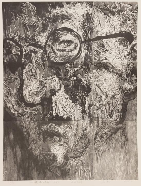 石磊 (1982年生),《镜花水月》,2014,9块木口木刻版拼贴,Nigel Hamway 收藏,作品复制权©石磊,图片摄影© Tom Willingham