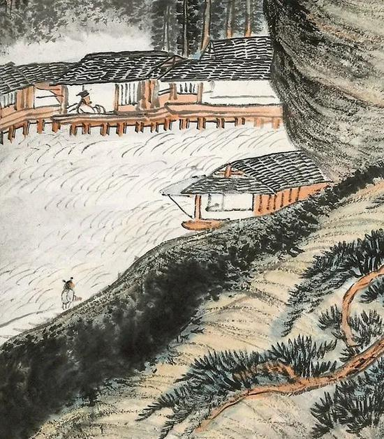 贺天健的作品带有强烈的个人风格,气势雄强,落墨大胆,和临古派的秀美温润不同,看他的作品,经常被画里透出的气息所震撼。