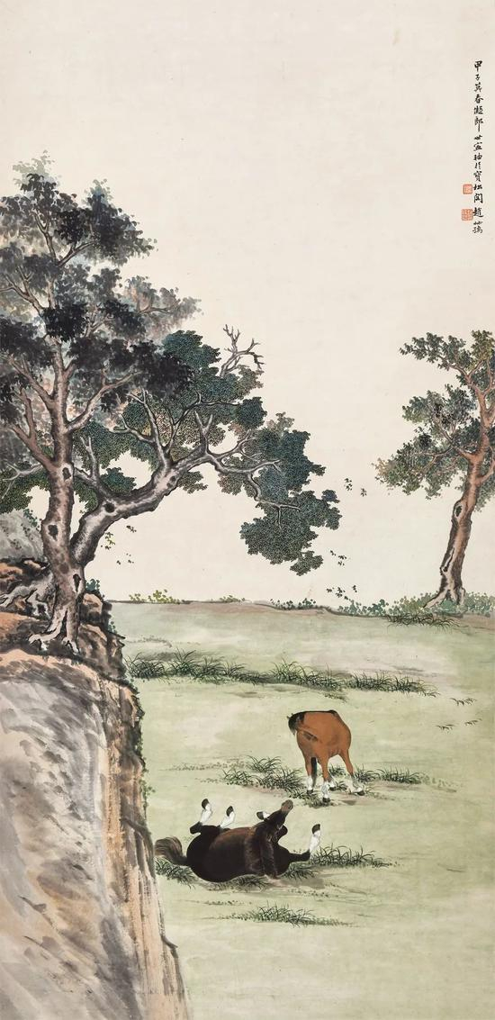 题识:甲子暮春,拟郎世宁轴于宝松阁。赵叔孺。