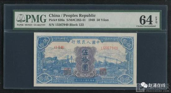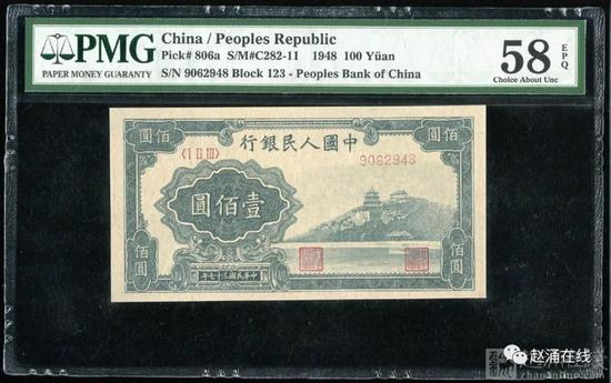 本券极为少见,上印毛主席头像,品相一流,为解放区版块难得一见的珍品,19.7万成交,再创历史新高。