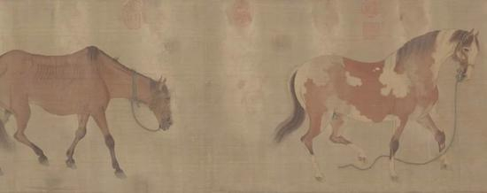 (元)任仁发 二马图 绢本设色 142.7×28.8cm 北京故宫博物院藏