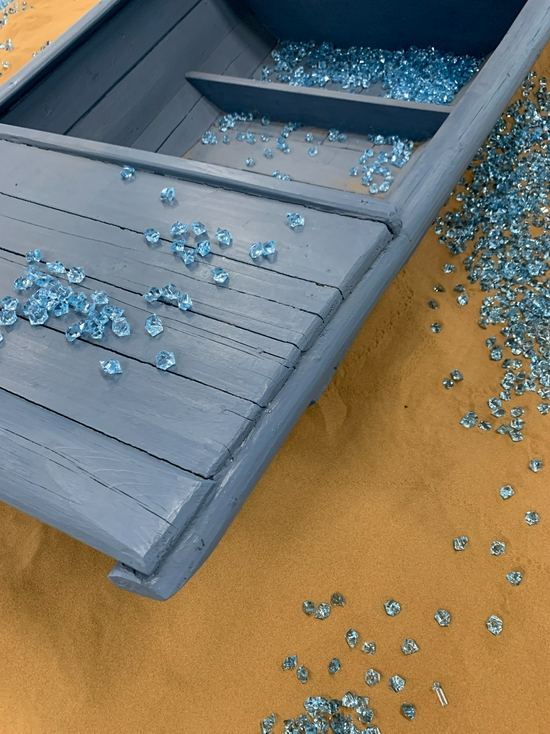 陈曦 《迷途》 木雕高300cm 底座150cm 木船390cm 总长1350cm。 绘画 木质雕塑 2021