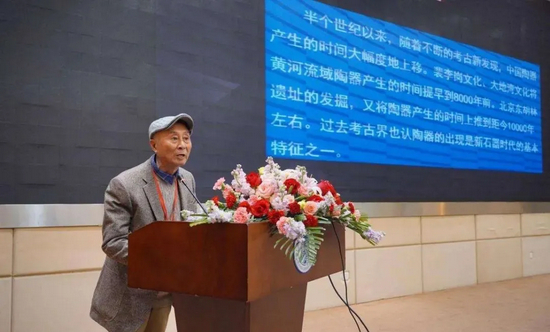 苏州大学教授、博士生导师、苏州大学博物馆名誉馆长张朋川作了题为《中国陶瓷起源新认识》的主旨演讲。张朋川表示,近年来中国史前考古对中国陶器的产生时间及彩陶、白陶、黑陶的源流发展等问题有新的认识。他认为,通过中国史前陶器的考古新发现表明,中国陶瓷史起点早,有着两万年的历史。史前陶器种类多样,文化脉络宽广,谱写了陶和瓷相延发展的历史,构成了传承有序的光照万世的中国陶瓷史。