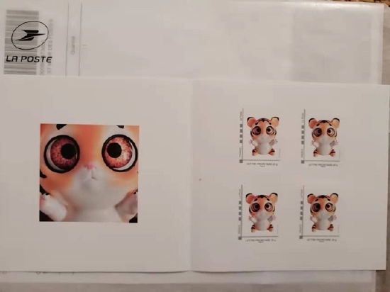 作品《抱抱虎》也期遇在他乡的亲友能够在这特殊的抗疫期间能感受到国家的慰问和温暖,这套邮票作品由法国邮政印刷,版数限量法国国际版十张,法国国内四张,材料为亮面胶纸板,且具有一定收藏价值,非常适合作为礼物馈赠异国亲友。
