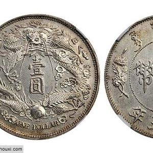 PCGS-UNC光绪丁未壹圆,币面柔光,龙鳞完好,略有刮擦痕迹,估价7000-9000美元;NGC-MS65宣统二年壹圆,水龙图案,为NGC亚军分数,颇为罕见,此枚银光充沛,打制深峻,字口图案完整清晰,估价4-5万美元。