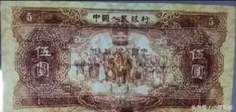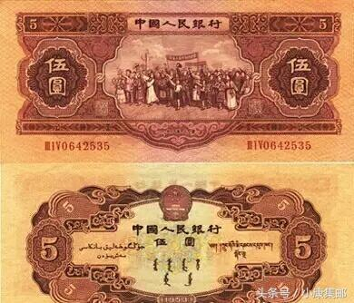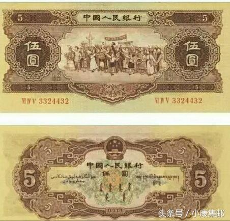 二版币伍元有两个版别,一种叫“红伍元”,是苏联代印的。另一种叫“黄伍元”,是我国自己研制的。