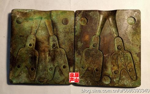 二、此类钱币因钱范所铸,必然有两枚或数枚存世,孤品、仅有之说不靠谱;三、所谓“若是见到两枚相同的三孔布,一定是赝品”的谎言,可以休矣!