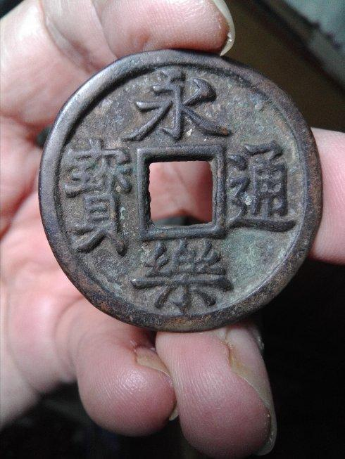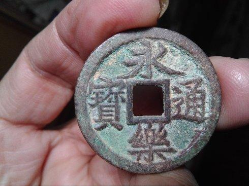 2007年美国寻宝网Treasurenet有人展示了在俄勒冈发现一枚永乐通宝,接着,又有人展示另一枚。