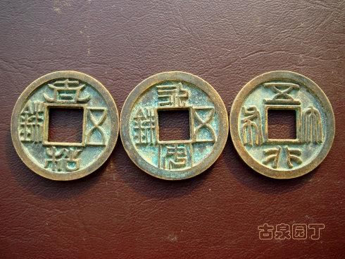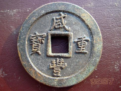 这两枚咸丰。文字是电脑字库中的。笔画细瘦,和钱币很不成比例。