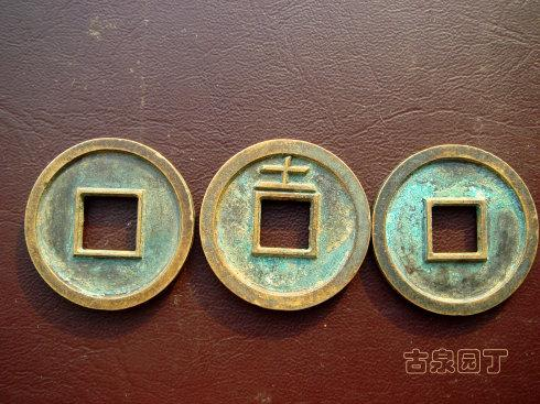 例如这两枚,几乎就是真假难辨。但是,你拿出真母钱,就可以看出差别。