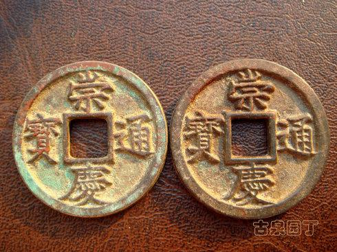 先看看真品吧。这是我的一对崇庆通宝母钱。
