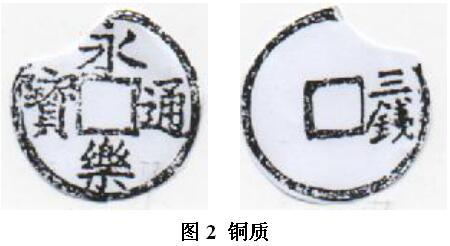 如前所说,马传德先生在“明代珍钱-永乐通宝折三”一文中,曾说王蔭嘉先生旧藏之缺角永乐通宝背三钱“质为黄铜”。对于此种说法,笔者不敢苟同。因为从中国古代铜金属冶炼史来看,黄铜是在明嘉靖六年(1527年)以后才出现的,而比嘉靖要早近百年的永乐朝,怎么可能会铸造出黄铜钱呢?除非是后铸的赝品。但这种可能性不大,因为深谙明钱的王蔭嘉先生绝不会用重金购买用黄铜铸造的赝品钱。其实要弄清这个问题也很简单,只要上海博物馆对此钱做一下金相分析,问题就迎刃而解了。若是真钱,必为青铜。