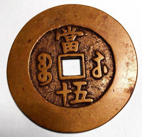 附:特阔缘的咸丰重宝当五十样钱(出谱的“尔”宝超大型)试铸样:
