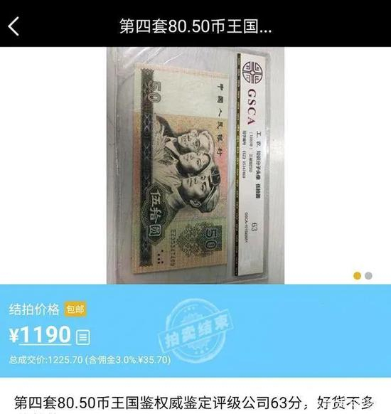 一张50元1190元成交 这样的纸币你还有吗