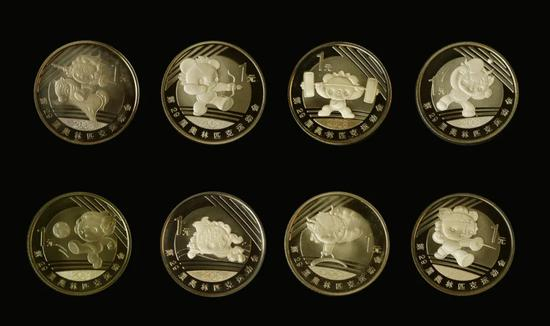 2008年奥运会流通纪念币:2008奥运流通纪念币整套的发行其实前后历经三年,从2006年开始发行直到2008年结束,前后总共发行了8枚纪念币,包括06年2枚,07和08年各3枚。纪念币本身采用黄铜合金材质,面值为1元,发行量都是1000万枚。