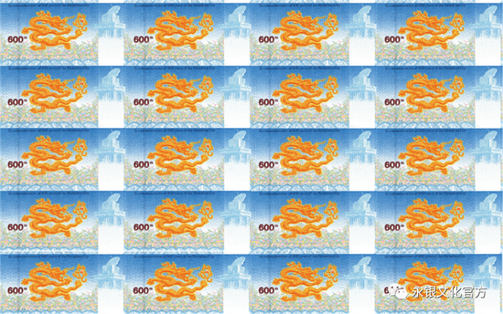 “紫禁城建成600年纪念券” 是故宫博物院与中国印钞造币总公司签署战略协议后合作发行的首款产品。纪念券正面以太和殿为主景,背景辅以紫禁城鸟瞰图,同时展现其雄伟壮观与历史深邃。背面选用九龙壁上的第一条龙为主景图案。三交六椀菱花窗棂、琉璃砖雕、日晷、龟背纹、江崖海水纹等故宫经典元素分布在纪念券的不同位置。
